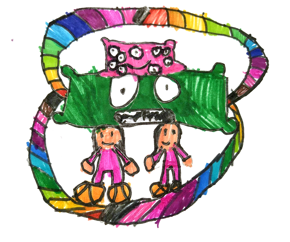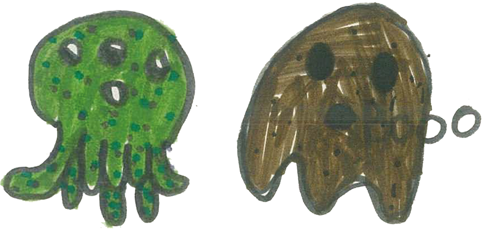 Aaaaah! Estem escagarrinats amb tants monstres! Sort que, de vegades, la por també pot ser divertida… Si cliqueu damunt els dibuixos, els veureu més grans.